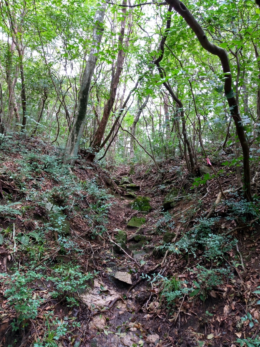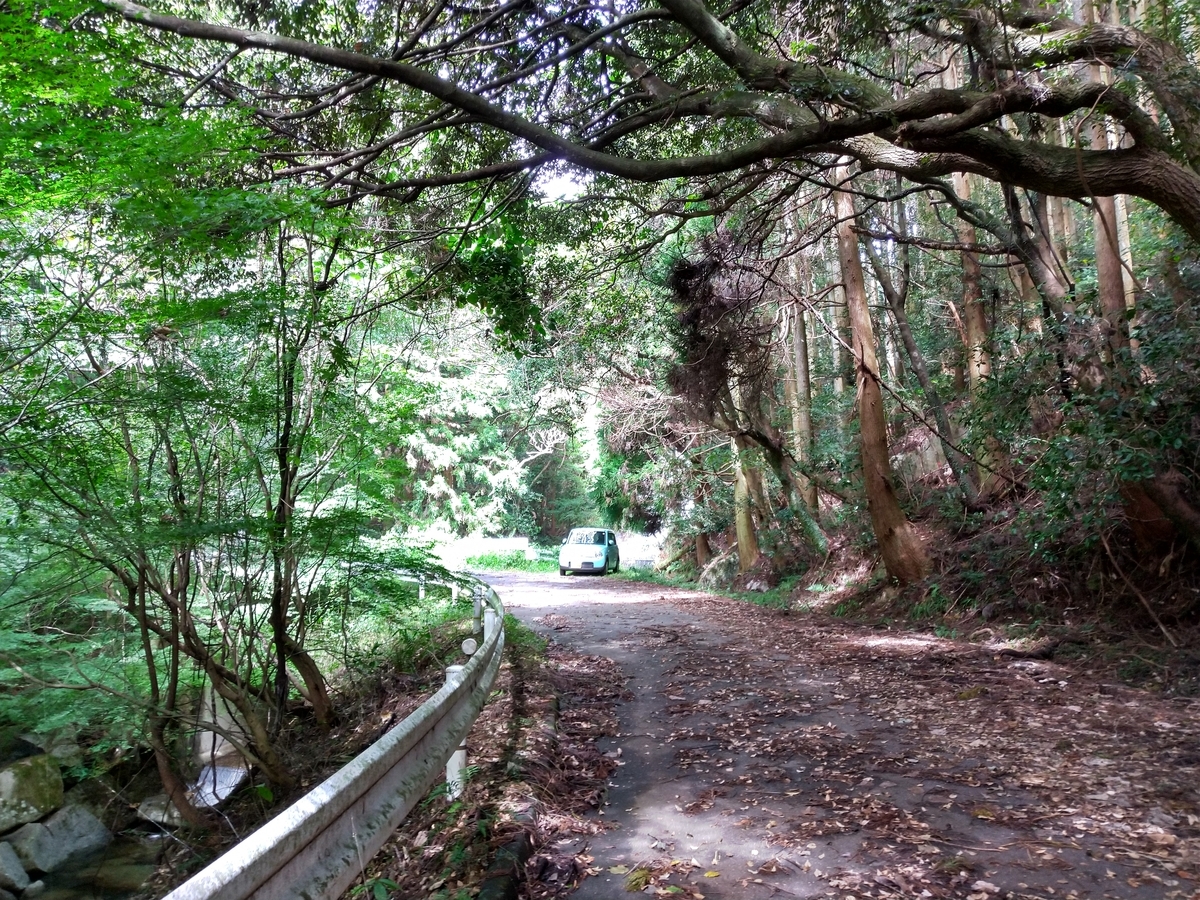 舗装路をしばらく下り、ガードレールを越えて登山路に降りる。